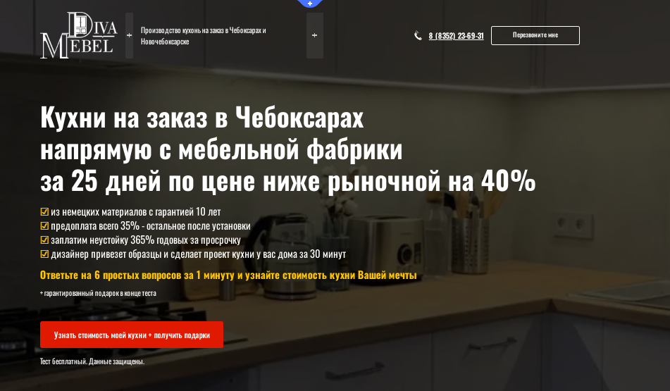 От разработки сайта до первых продаж. Информация о проекте В августе 2022 года к нам обратился руководитель мебельной компании «Дивамебель». Они занимаются изготовлением мебели на заказ в г. Чебоксары. Задачи проекта Как строилась работа над проектом: Разработка сайта Рекламная стратегия В данном проекте для продвижения в проекте было решено использовать «Мастера кампаний» по конверсионным запросам (купить кухню на заказ, цена кухни на заказ..) с оплатой за заявку. Но в «Мастерах кампаний» есть своя особенность. Кампания «умирает» если роботы Яндекса сразу не цепляются за аудиторию и не приносят заявки по указанной цене. Наша рекламная кампания завелась и полетела! На второй день работы пошли заявки! В процессе работы для теста была запущена рекламная кампания в сетях с оплатой за клики. Стоимость заявки в данной рекламной кампании пошли по 1394 руб. В итоге ее отключили. Результаты проекта За период с 13.08.22 г. по 15.09.22 г. получено 37 заявок по 490,96 руб.с НДС Сейчас производств