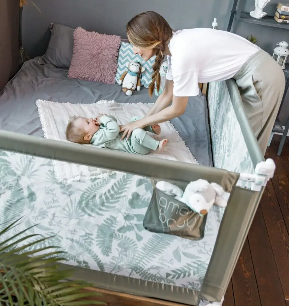 Об этой покупке я не задумывалась ни на стадии беременности, ни когда уже родился мой малыш, странно, что мне даже в голову не приходила мысль о необходимости защитных барьеров для кровати. Поначалу я планировала раздельный сон, была приобретена кроватка, оборудована детская комната. Некоторые из моих знакомых подруг, кто уже стал мамочкой, конечно говорили мне, что удобней будет спать вместе, но я не придавала значения этим словам. Все мы приходим к своим решениям методом проб и ошибок и нет учителя лучше чем свой собственный опыт, который я вскоре, конечно же, получила. Через три недели регулярных ночных подъемов, я проснулась сидя в кресле с ребенком, который лежал на животе, у меня на коленях. Я уснула пока кормила его, расслабила руки и он с моих рук сполз мне на колени. Слава Богу, что кресло было невысокое и он не упал дальше. В тот момент я была в ужасе и решила, что не буду бороться с ветряными мельницами, ведь сама себе придумала эту необходимость – спать раздельно, и му