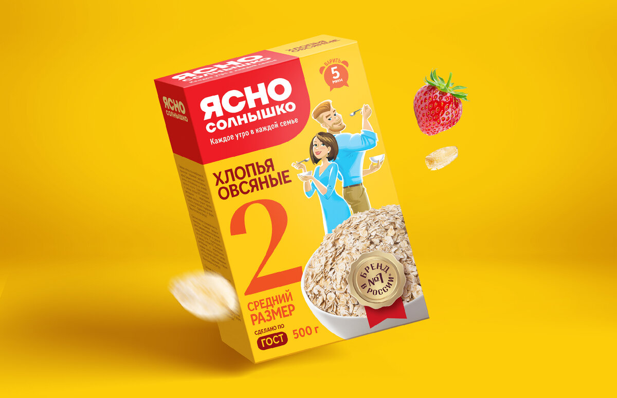 Бренд «Ясно Солнышко» существует с 1998г и представлен в нескольких категориях зерновых для завтраков. Ассортимент продукции под брендом «Ясно Солнышко» включает в себя такие категории как хлопья овсяные, хлопья разнозлаковые, хлопья овсяные с фруктами, каши овсяные быстрого приготовления, гарнирные гречневые каши. Задача Обновить образ бренда «Ясно Солнышко» во всех текущих ассортиментных категориях и разработать дизайн-стратегию бренда для применения в новых категориях. Решение Бренд «Ясно Солнышко» является лидером в РФ в категории «Хлопья Овсяные» на протяжении нескольких лет, по данным Нильсен, и занимает первое место. Рынок завтраков достаточно консервативен, но в последнее время стали появляться знаковые редизайны, которые меняют полку и представления о покупателе. После аудита по нашей методике «Три слоя эффективности» стали понятны ключевые преимущества таких сильных игроков как Увелка, Нордик, Русский Продукт и стало понятно, какие точки роста есть у бренда Ясно Солнышко. При