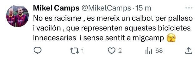 «Это не расизм, он (Винисиус) заслуживает подзатыльника за то, что он клоун и балагур, делающий эти ненужные и бессмысленные трюки в центре поля» — написал Микель Кампс в Твиттере.