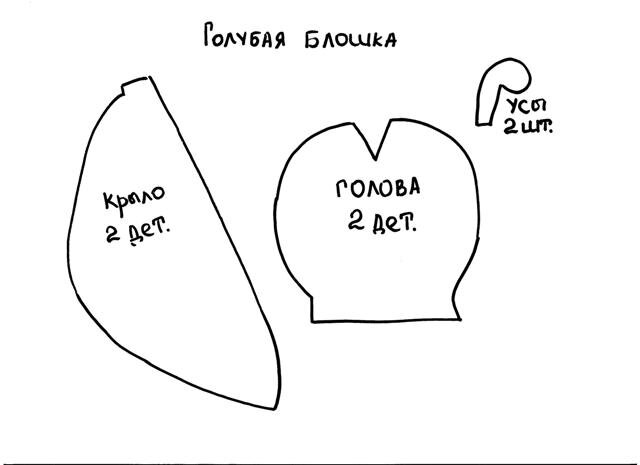 Приходили к мухе блошки, Приносили ей сапожки. Продолжаю шить насекомых для кукольного театра по сказке К.И. Чуковского «Муха - цокотуха». Ничего необычного в этом мастер - классе вы не увидите. Не обычен только сам образ - блошка. Выкройку распечатать на листе А 4. Вырезать. 1. Для туловища я выбрала портьерную ткань голубого цвета. Складываю ее вдвое. Выкройку туловища для надежности закрепляю булавками. Поскольку ширина ткани позволяет, выкроила деталь подлиннее, чтобы во время игры, руку не было видно над ширмой. 2. Низ ткани оказался зубчиками. Я его не отрезала, оставила так. Не пришлось подшивать низ туловища. На машине прошиваю боковые швы, а также срезы обработала швом «зигзаг». 3. Вывернула туловище на лицевую сторону. 4. Блошка - маленькое насекомое с крыльями. Для крыльев я взяла толстые салфетки для кухни. 5. Выкройки на салфетке разместила так, чтобы поместились оба крыла. Шаблон обвожу серебристой гелевой ручкой. 6. Вырезаю оба крыла. 7. Края крыльев обшиваю синельной пр