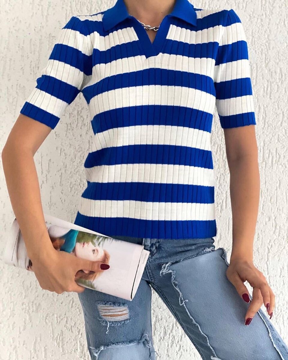 Женский джемпер в полоску с воротником, стал обязательной и базовой вещью в гардеробе. Джемпер, можно сочетать с брюками и джинсами с высокой посадкой, жакетом и худи, или создать легкий повседневный образ со своими любимыми джинсами и курткой-косухой. Джемпер с V- вырезом мягко облегает силуэт фигуры, подчеркивая ее достоинства и не стесняет движение, очень приятно к телу, дышит, тянется и не деформируется после стирки. Джемпер не сдавливает тело, не просвечивает. Поставка: со склада г. Москва - отгрузка сразу после оплаты.
