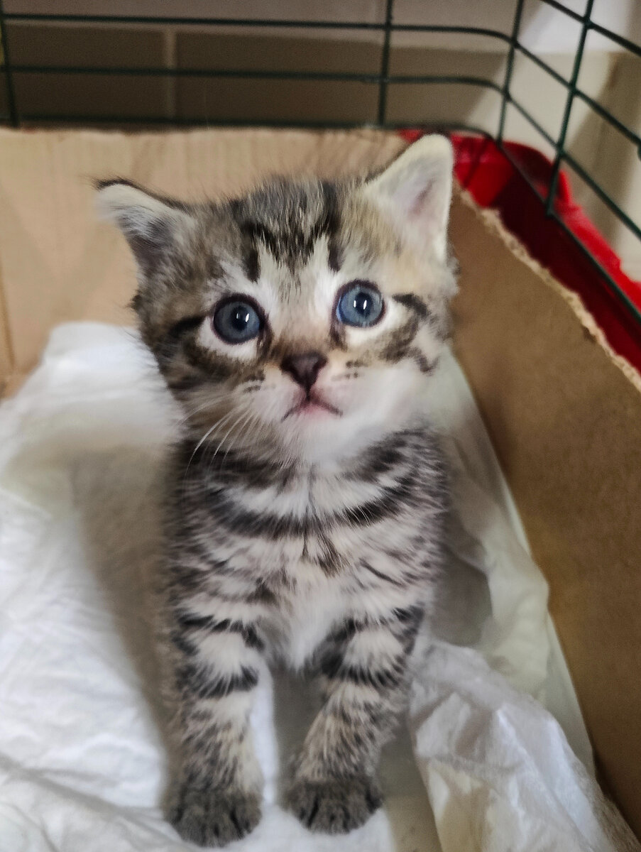 Котенка и его кошкомать принесли в клинику. Нашли ее с одним котенком на дачах. Кошке нашли дом. Котенку он всё ещё нужен. Игривый, ласковый, ходит в лоток, ест сухой корм. Сейчас находится в клинике в Тосно.