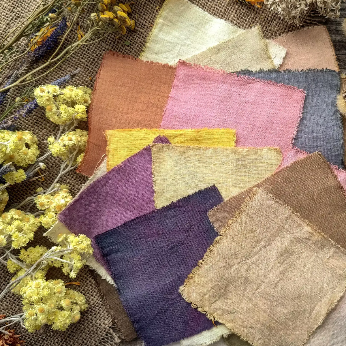 Это одна из самых популярных тканей для окрашивания натуральными красителями. Хлопок хорошо впитывает красители, создавая яркие и насыщенные цвета. Он также долговечен и устойчив к стирке. - Лен