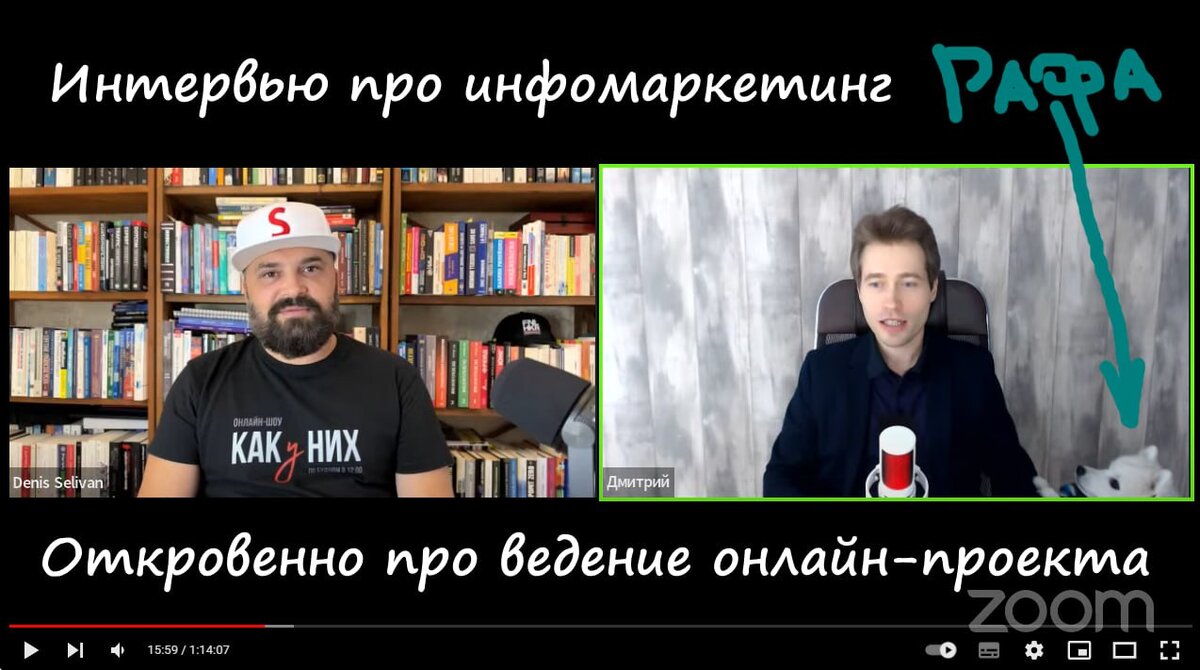 Славно пообщался с Деном Селиваном, который последовательно и систематично приглашает к себе на созвон разных инфо-деятелей. Рассказал про: Кому интересно узнать меня немного получше - посмотреть можно здесь: https://www.youtube.com/watch?v=JYkY-kIn4zk P.S. Во время созвона обычно мирно отдыхающий в это время Рафа решил вдруг поиграть в канатик 😅 — Присоединяйтесь к моему Telegram-каналу - там много практичных постов по инфомаркетингу. Дмитрий.