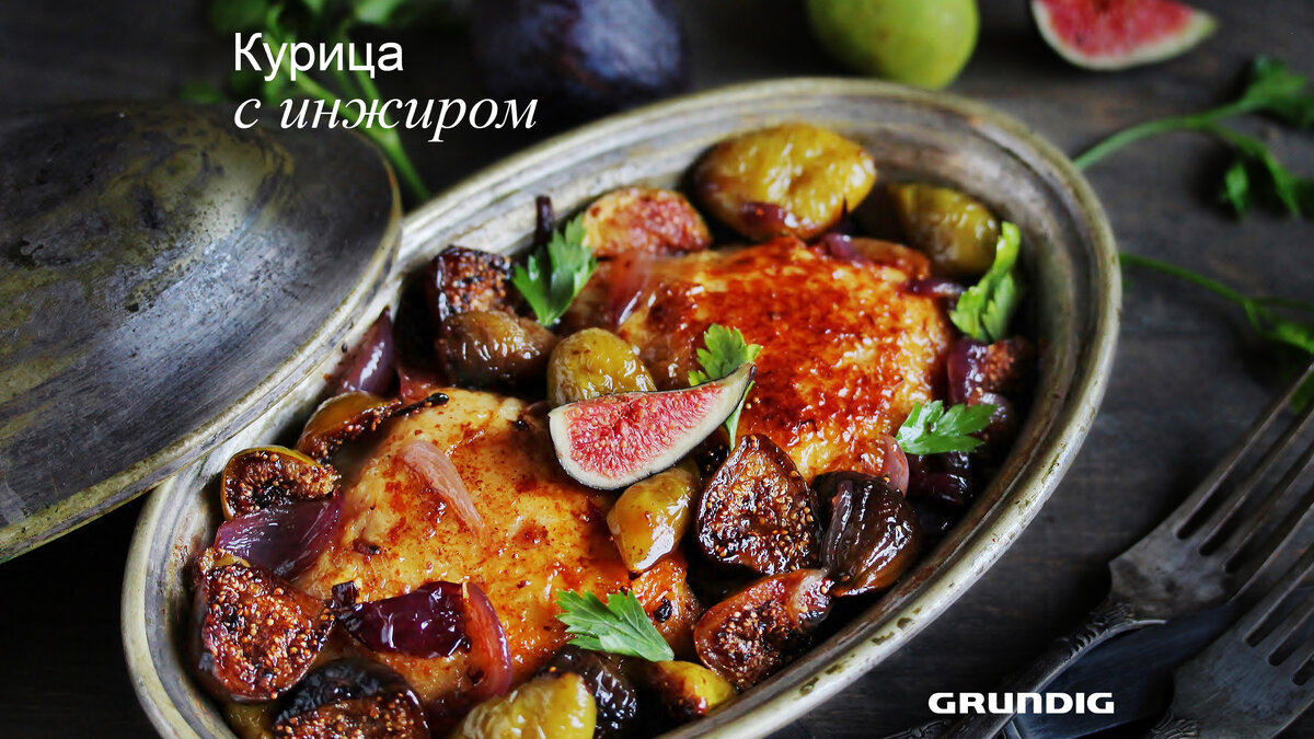 Сочетание мяса и фруктов уже становится традиционным, в ход идут яблоки, ананасы и даже цитрусовые. Но, этот рецепт вас точно удивит. Такое богатство вкусов невозможно получить одними специями. У инжира богатый аромат и плотная мякоть, что делает его идеальным компаньоном для мясных блюд. Приготовьте курицу с инжиром и вы точно добавите этот рецепт в вашу копилку вкусных и полезных идей для ужина. 1. Куриные бедра обжарить на газовой варочной панели Grundig GIGF7235220X на сковороде с оливковым маслом до золотистой корочки. 2. Лук порезать полукольцами, а перец крупными брусочками, добавить все к курице, обжарить в течение 5 минут. Нарезать петрушку, добавить к курице, влить вино. 3. Нарезать инжир на 4 части. На отдельную сковороду добавить сливочное масло, инжир и мед. Обжарить, аккуратно переворачивая, на протяжение 5-7 минут. 4. Куриные бедра с овощами переложить на тарелку, сверху выложить инжир. На газовой варочной панели Grundig GIGF7235220X вы можете приготовить блюда любой кух