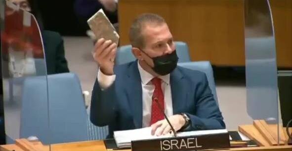 «Почему мы бомбим и убиваем женщин и детей? В нас кидают камни!» Представитель Израиля принёс на слушание в Совбез ООН камень, чтобы объясни