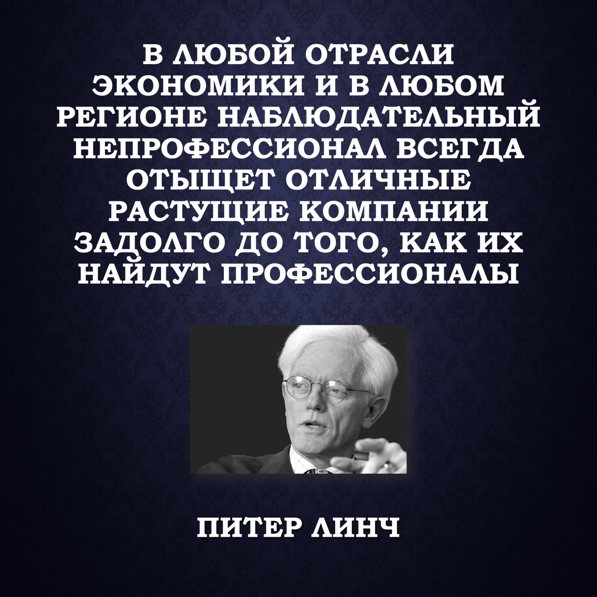 «В любой отрасли экономики и в любом регионе наблюдательный непрофессионал всегда отыщет отличные растущие компании задолго до того, как их найдут профессионалы». Питер Линч – американский финансист и инвестор, руководил крупнейшим в мире инвестиционным фондом Magellan Fidelity. Предлагаю вам в комментариях написать 3 акции, которые по вашему мнению должны вырасти в течение 5 лет. Я тоже приму участие) Мой выбор: Тинькофф, Новатэк, Новабев Не ИИР.