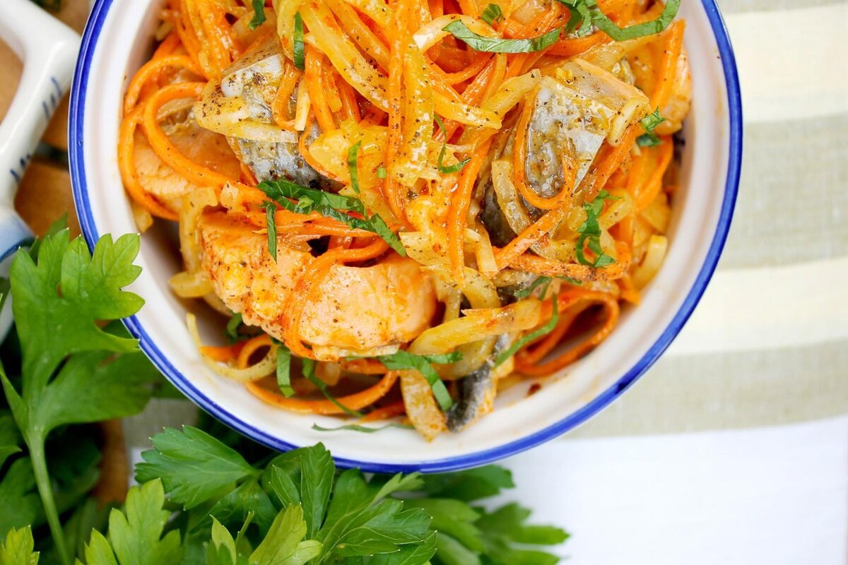 Корейская закуска Хе(в простонародье хешник) - воистину деликатесная закуска, которую можно приготовить из овощей, разной рыбы, мяса и некоторых морепродуктов. Сегодня мы будем готовить хе из карпа. Ингредиенты : Карп - 2 кг Уксусная эссенция (не менее 70%) - 1 ст. ложка Масло растительное - 100 гЛук - 1 шт. Семена кинзы - 1-2 ч. ложкиЧеснок - 1 головка Перец жгучий красный - 2 шт. Соевый соус - 3 ст. ложки Соль - 1-2 ч.ложки Приготовление : Карпа массой два килограмма чистим от чешуи и внутренностей, моем. Отделяем филе от костей и кожи. Мелко нарезаем филе карпа соломкой. Складываем в миску, добавляем одну столовую ложку уксусной эссенции (не менее 70%). Перемешиваем и закрываем под пресс на 30 минут. Пока приготовим заправку. На сковороде разогреваем 100 грамм растительного масла, нарезаем кубиками одну крупную луковицу. Обжариваем её до прозрачности, добавляем 1-2 чайные ложки соли. Снимаем с огня. Измельчаем одну некрупную головку чеснока. Мелко нарезаем два острых перч