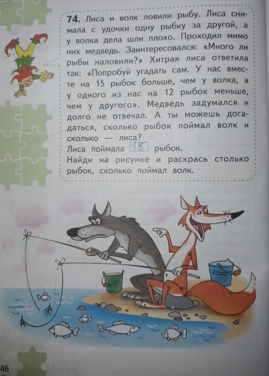Лиса и волк ловили рыбу. Лиса снимала с удочки одну рыбку за другой,а у волка дела шли плохо. Проходил мимо них медведь.....