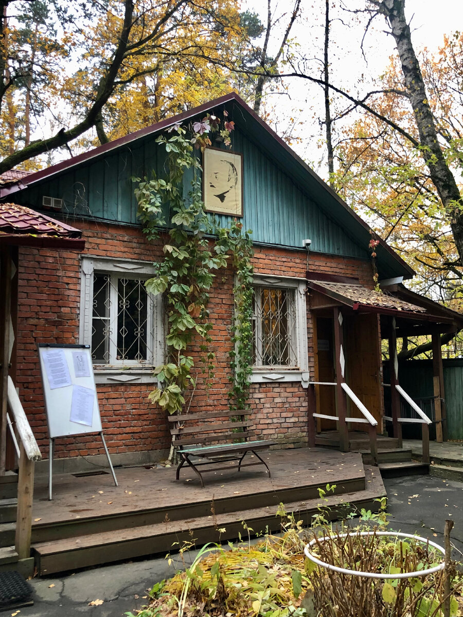 Осенью в Переделкино особенно красиво! Золотая окраска придает старым деревянным домикам особый, душевный колорит. Жаль, что некоторые дворики и дачи уже закрыты. Но в уютный дворик поэта Булата Окуджавы нам все же удалось попасть. Есть лавочки для отдыха и стенды, где можно ознакомиться с творчеством и биографией великого барда. Тихо. Уютно. Из окна дома на холодную улицу бьет теплый свет. На крыльце стоит картонная фигура Балта Окуджавы в полный рост Слева от барда Александр Сергеевич Пушкин в цилиндре Свое первое лето в Переделкино Булат Окуджава провел в далеком 1987 году. Для этого ему выделили небольшой дачный домик для временного проживания. Интересно, что его соседкой стала давняя подруга семьи — поэтесса Белла Ахмадулина. В Доме-музее Булата Окуджавы часто проходят музыкальные концерты, а также «Булатовы субботы» — выступления мастеров искусств и встречи с представителями творческих профессий. Для этих целей здесь выделена целая площадка и сцена с портретом барда. Хоте