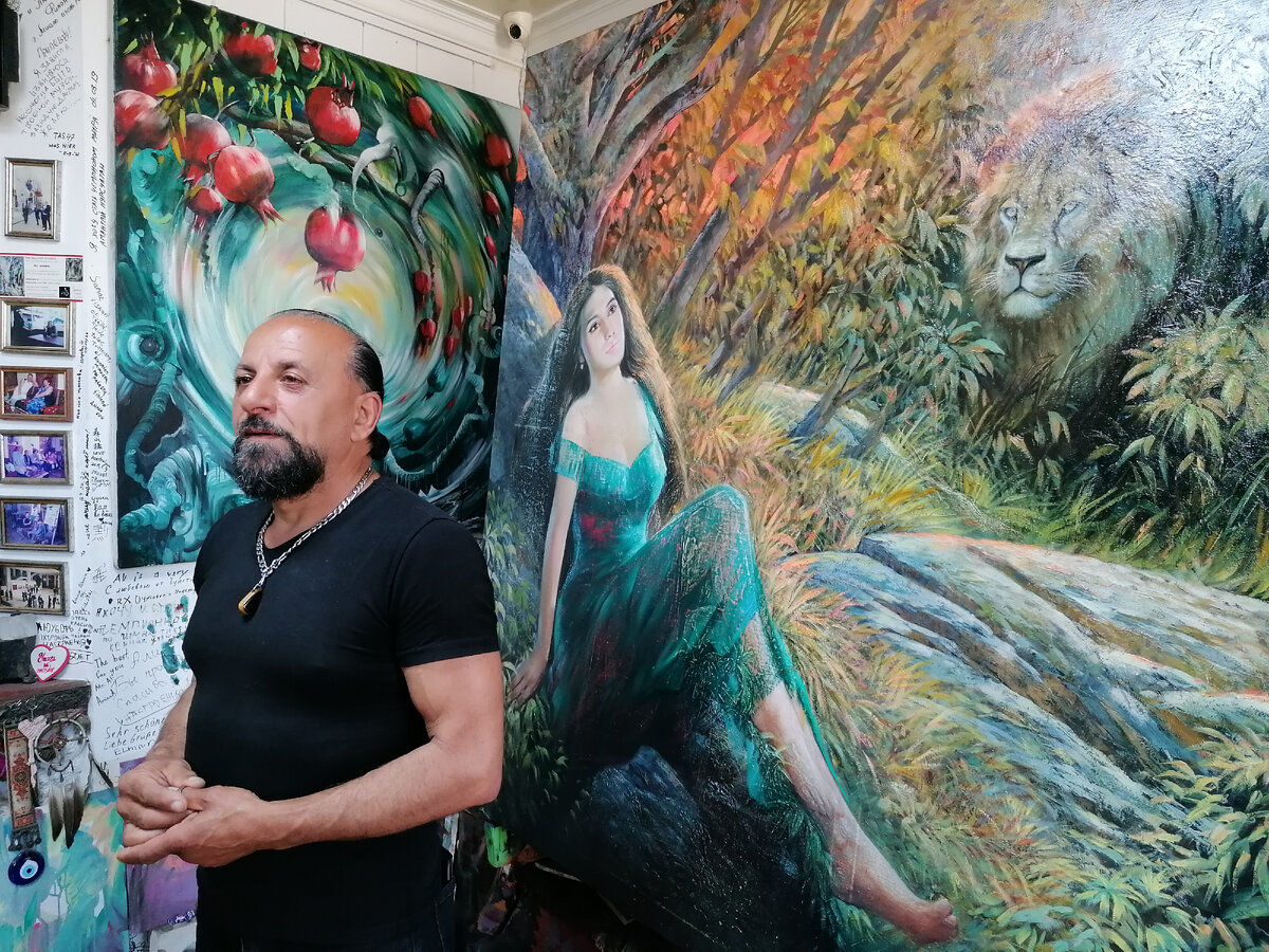 Во второй комнате находится много картин. Они завораживают яркими красками и разнообразием тематики. По словам Али, его работы выставляются на выставках в Лондоне, Риме, Париже и других галереях мира.