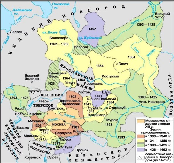 Географические условия развития Московского княжества, в общем, схожи с тверскими. Через княжество пролегали пути, связывавшие Волгу с Окой. Сюда, в глухой угол Владимирского княжества, бежало от татарских набегов и междоусобий сыновей Александра Невского население Суздальской земли. Приток населения множил экономическую мощь княжества. Московский князь мог исправнее платить дань татарам, чем другие, а это увеличивало его шансы на приобретение ярлыка на великое княжение.