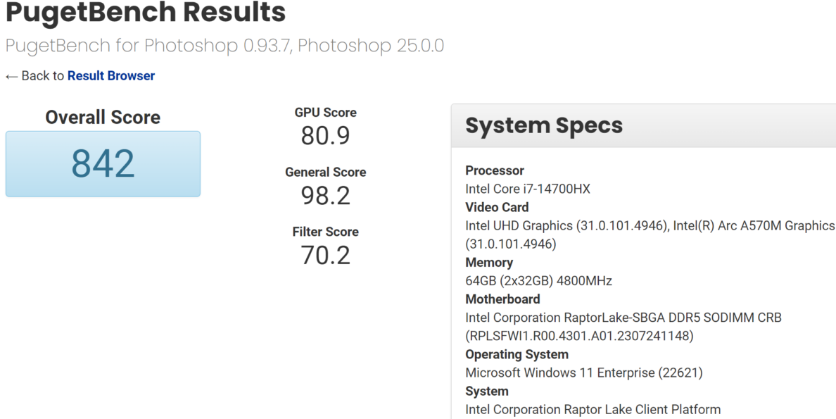 Intel недавно обновила свои процессоры Raptor Lake-S для настольных ПК, представив "новую" серию Core 14-го поколения, включая Core i9-14900K, Core i7-14700K и Core i5-14600K. Хотя полный запуск мобильной платформы Intel Meteor Lake ожидается в декабре, компания также активно работает над обновлением мобильных процессоров 14-го поколения для высококлассных игровых ноутбуков, известных как «HX». Недавняя утечка появилась на веб-сайте PugetBench, демонстрируя новую тестовую платформу Raptor Lake-S. В этой утечке информации процессор Core i7-14700HX был протестирован с 64 ГБ памяти DDR5-4800. Делает эту систему интересной то, что она также оснащена графикой Intel Arc A570M, в то время как модели Core-HX обычно предлагаются с высокопроизводительными видеокартами GeForce RTX 40. Вполне возможно, что этот графический процессор Arc Alchemist среднего класса использовался исключительно в целях тестирования. Данную конкретную запись обнаружил известный инсайдер @momomo_us, который ранее подтвер