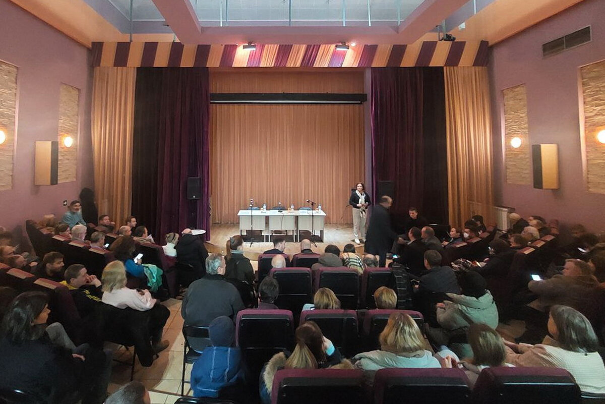 Встреча прошла на Кораблестроителей, в здании бывшего кинотеатра «Волна». Предполагалось, что туда впустят тех, кто заранее подал заявку и описал свою конкретную проблему, на входе всех сверяли со списком. Но очень скоро стало понятно, что, когда список этот будет исчерпан, пропустят и других — насколько хватит мест. Приехавший главный «ответчик» — зампредседателя комтранса Дмитрий Ваньчков — предложил поискать стулья и усадить всех желающих, чем выдал себя: через минуту он уже описывал плюсы платной парковки журналистам, чье внимание перехватывал возмущенный местный житель. В зале в это время собралось более 100 человек.
