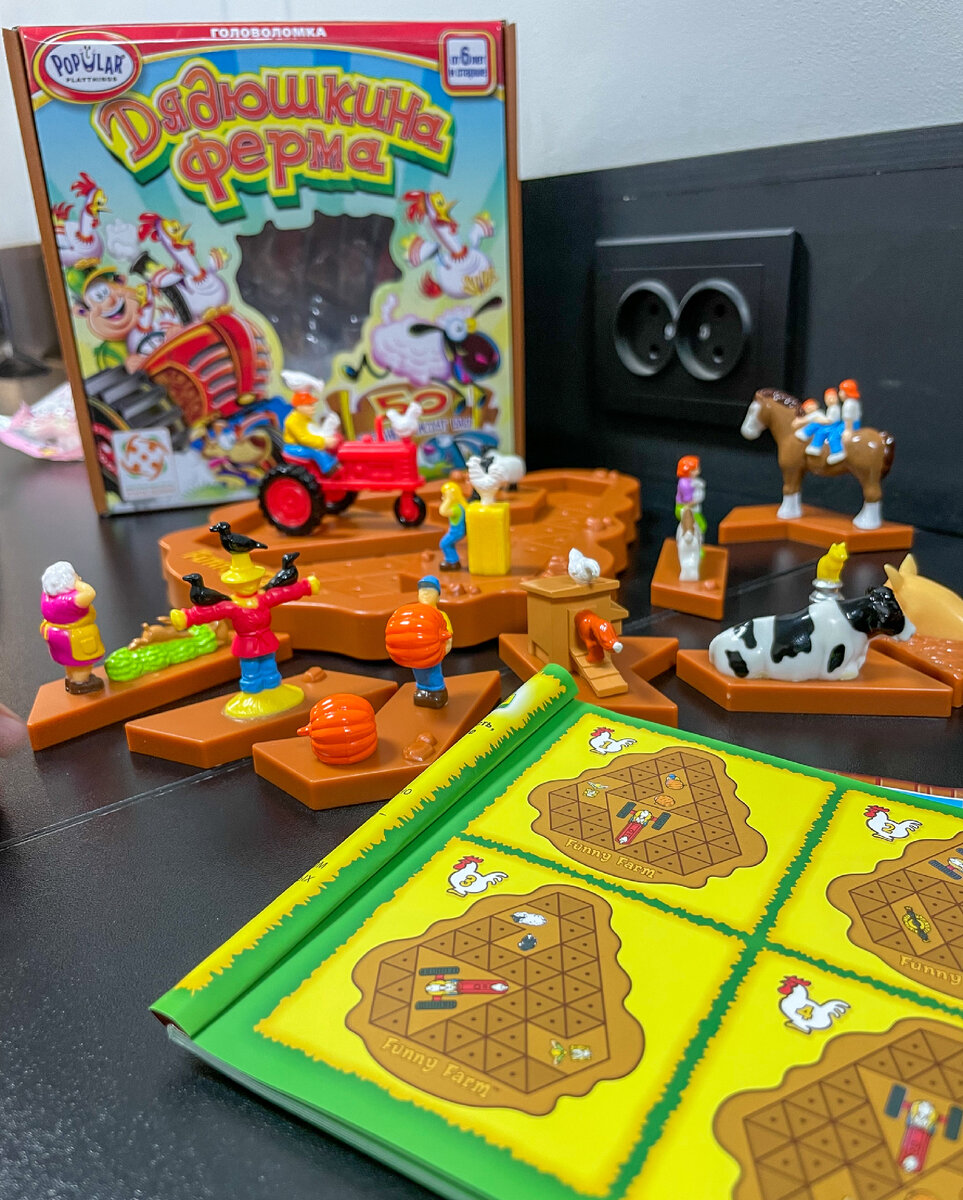 В общем, если ваш ребёнок достаточно усидчивый и любит такого плана задачки, рекомендовала бы «Дядюшкину ферму» — так как игра из пластика, её нестрашно взять с собой и на природу, и в поездку — в общем, хоть куда ;)