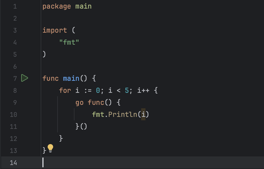 В коде используются горутины для вывода значений i. Что выведется? Отвечать на этот вопрос надо так: вывод недетерменирован. Это, если кратко, а подробный ответ будет таким: Когда основная горутина - функция main запускает горутину с анонимной функцией, она не ждет, пока та завершится, и продолжает свое выполнение. В большинстве случаев, вывод будет пустым, так как main закончит выполнение до запуска горутин из цикла. Исправляем: 1. В 9 строке создали экземпляр WaitGroup для синхронизации горутин. WaitGroup используем для гарантии, что все горутины завершат свою работу до того, как завершится main. 2. С помощью wg.Add(5), установили счетчик WaitGroup на 5. У нас ведь 5 горутин. 3. В цикле запустили 5 горутин. В каждой использовали wg.Done(), который уменьшает счетчик WaitGroup на 1. Использование defer гарантирует, что wg.Done() будет вызвано при любом завершении функции, независимо от того, произошла ошибка или нет. 4. В конце вызвали wg.Wait(). Это блокирует выполнение программы д