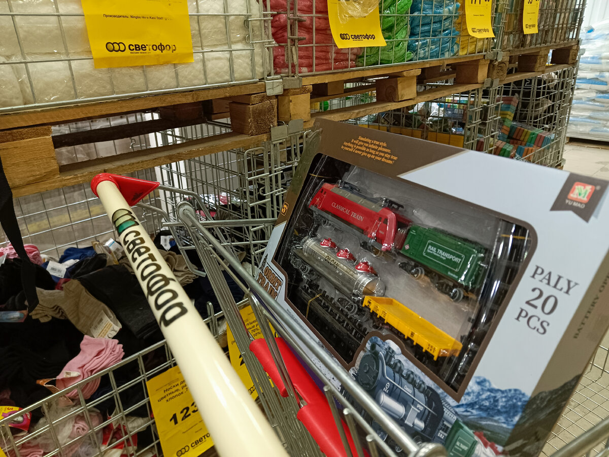 В "Светофоре" всегда много покупателей, так, как магазин постоянно пополняет свои полки товарами широкого спроса. И с каждым моим посещением, я вижу много новинок и неплохих товаров, которые стоят относительно недорого. В этом обзоре, делюсь с вами увиденным в "Светофоре" города Крымск. Детская железная дорога с локомотивом и тремя составами, длина рельс 395 см, всего в подарочной упаковке 20 предметов. Всё это работает от батареек, которых хватит на несколько часов работы. Цена 703 рубля. Стеклянная ваза PIKNIK для фруктов или выпечки 25 см. Цена 205 рублей. Портативная акустическая колонка из Китая мощностью 8 ватт, со встроенным аккумулятором, Led подсветкой, FM-радио, USB входом и функцией bluetooth. Цена 571 рубль. Ватный матрас в плотном чехле из 100% хлопка, размером 90х190 см. Цена 1015 рублей. Набор для мытья полов из складной швабры, двух насадок и двойного ведра, для воды и отжима. Цена 715 рублей. Набор высоких стеклянных стаканов из 6 штук, объёмом 250 мл. Цена 152 рубля.