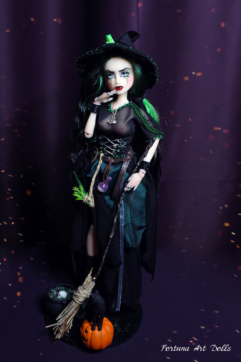 Из года в год под Хеллоуин я создаю ведьм) Этот год не станет исключением, но в этот раз я пошла особенным путем - и решила воплотить классическую ведьму на своей авторской кукле. Магическая ведьма готова! Я безумно довольна тем, какой она получилась - именно такой, какой и задумывалась) • Куколка полностью создана с нуля и собрана на резинку. Материал - фотополимерная смола.