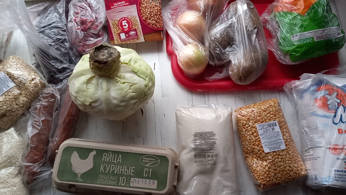 Всем здравствуйте. Меня зовут Ирина. Мы с сыном Денисом иногда проводим экспериментальные проекты на выживание и не только. Сразу скажу, что мы оба работаем и подрабатываем. Наши проекты – это наша инициатива и желание. Данный новый проект - одиночный, в котором участвовать буду только я. Денис уехал в Киров по работе почти на две недели((( Проект будет длиться 14 дней и я планирую потратить не больше 1500 рублей. Итак, моя закупка: Магнит: Масло подсолнечное 79,99 руб. Горох 36,99 руб. Сахар 68,89 руб. Рис 68,19 руб. Лук 10,15 руб. Картофель 12,08 руб. Геркулес 13,09 руб. Морковь 11,00 руб. Капуста 40,43 руб. Мука 49,99 руб. Цыпленок бройлер 247,13 руб. Гречка (по акции) 39,0 руб. Сыр Голландский (моя цена) 79,99 руб. Одно яблоко 10,65 руб. Соус майонезный 32,99 руб. Фрикадельки свиные 104,99 руб. Светофор: Крупа перловая 30,00 руб. Огурцы 27,17 руб. КБ: Яйца 1С 69,90 руб. ИТОГО за первый день проекта я потратила – 1032,62 руб. Практически 1/3 заявленной суммы. Но успокаиваю себя тем,