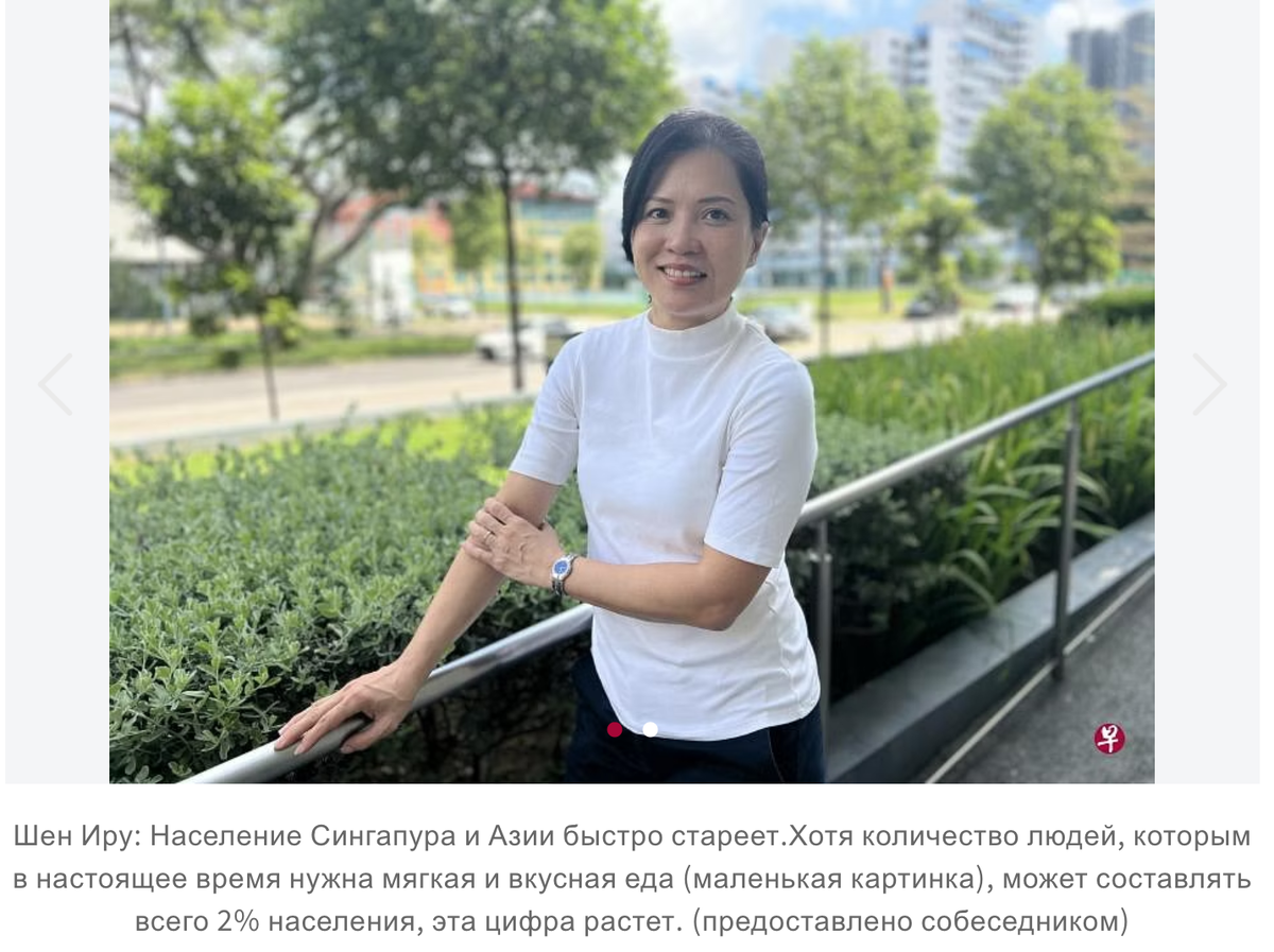 В последние годы все больше и больше людей начинают свой собственный бизнес не только для получения прибыли, но и для того, чтобы внести свой вклад и оказать влияние на определенные группы или среду в обществе. Источники СМИ https://www.zaobao.com.sg/finance/singapore/story20220310-1250730 Цитаты из источников : Оказывается, пациенты с деменцией иногда забывают жевать перед глотанием, а для пожилых людей с трудностями при глотании последствия очевидны. Она сказала: «Моя бабушка старая и страдает болезнью Альцгеймера, поэтому нам приходится готовить еду, которую ей будет легко проглотить». Она также отметила, что выписанные пациенты могут не только поставляться в больницы и дома престарелых, но и продолжать наслаждаться этим видом еды и становиться постоянными клиентами. Если такой еды нет, многие люди предпочитают пить только кашу. Население Сингапура и Азии быстро стареет. Хотя в настоящее время число людей, нуждающихся в мягкой и гладкой пище, может составлять лишь 2% населения, эта