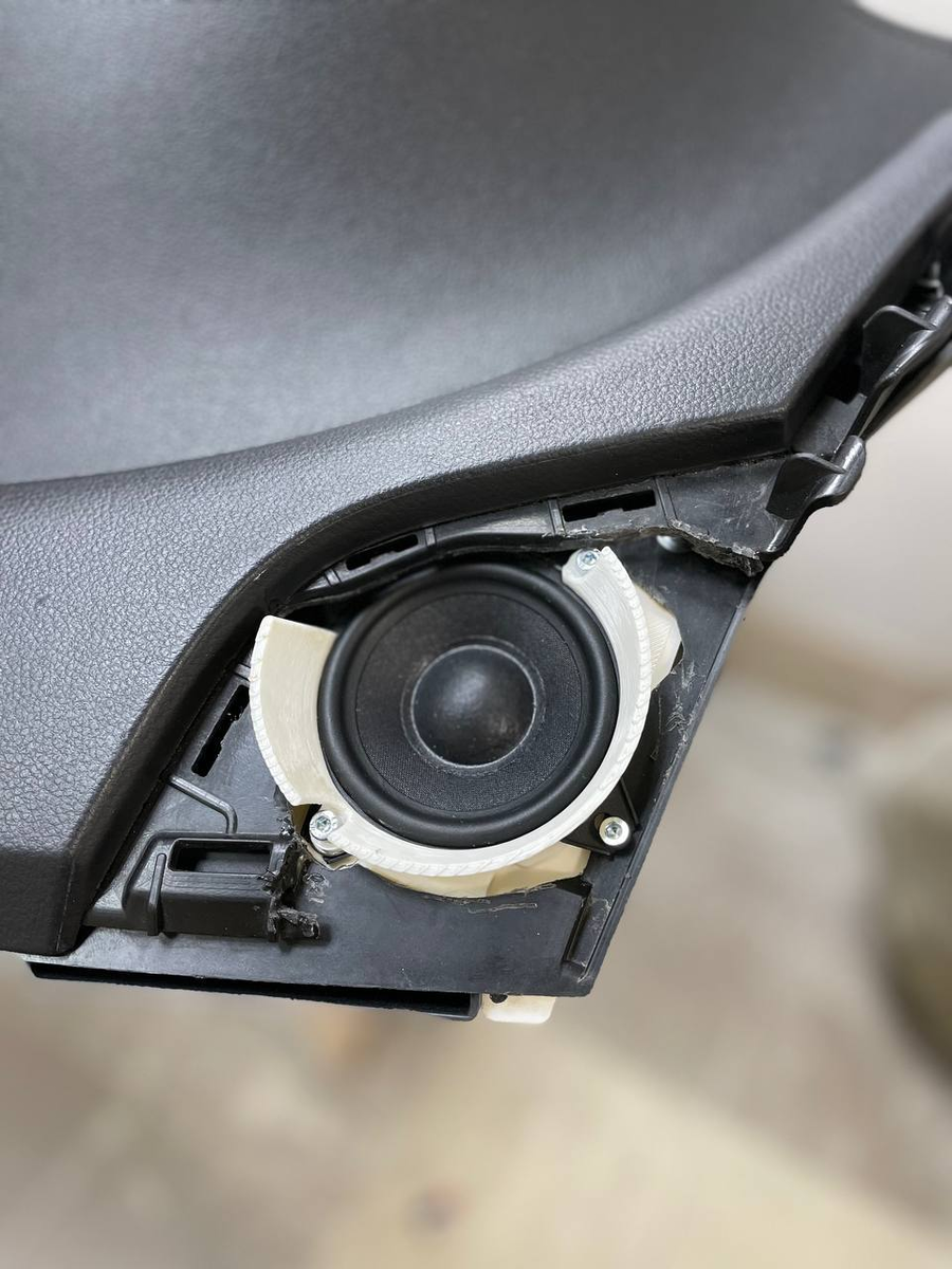 🟦Напечатанную конструкцию декорируем и устанавливаем в торпедо в ней же присутствуют динамики, закрепленная конструкция имеет винтовое крепление.