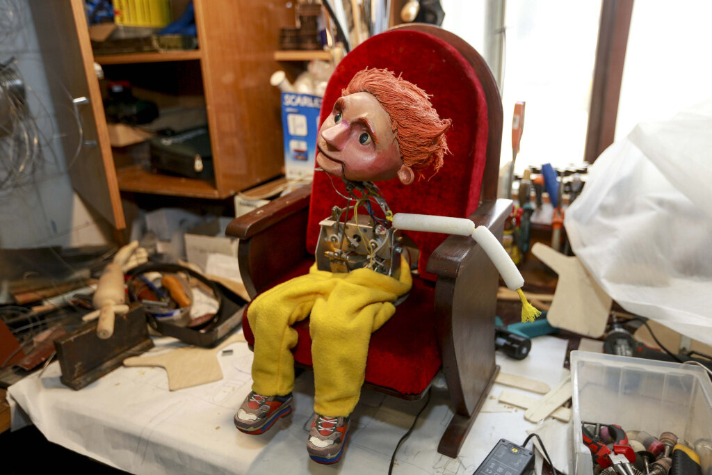 «Театр делает до десяти премьер в год. И у нас не принято с одними и теми же куклами играть разные спектакли. Для каждого спектакля делают своих. Образ придумывает художник, конструктор делает механизм, который позволит кукле раскрыть свой характер в пластике. Мои коллеги в другом цехе затем куклу обшивают, наряжают, раскрашивают. А влюблялся в своих кукол я всегда после того, как их оживит актёр», — рассказывает конструктор.