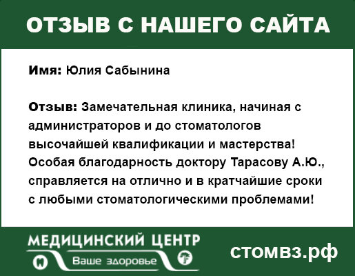 Новый отзыв о работе МЦ "Ваше здоровье" с нашего сайта