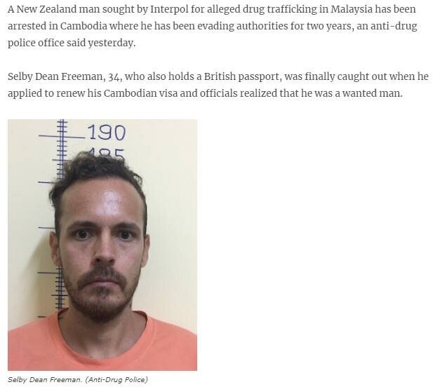 Начально Иммиграционное бюро не раскрыло личность арестованного, но позже газета Matichon опубликовала информацию о нем. Гражданин Новой Зеландии был идентифицирован как Селби Дин Фримен, который уже был в центре внимания прессы по всему миру в связи с различными делами о наркотиках и привлекался к уголовной ответственности в разных странах, включая Камбоджу и Кению.