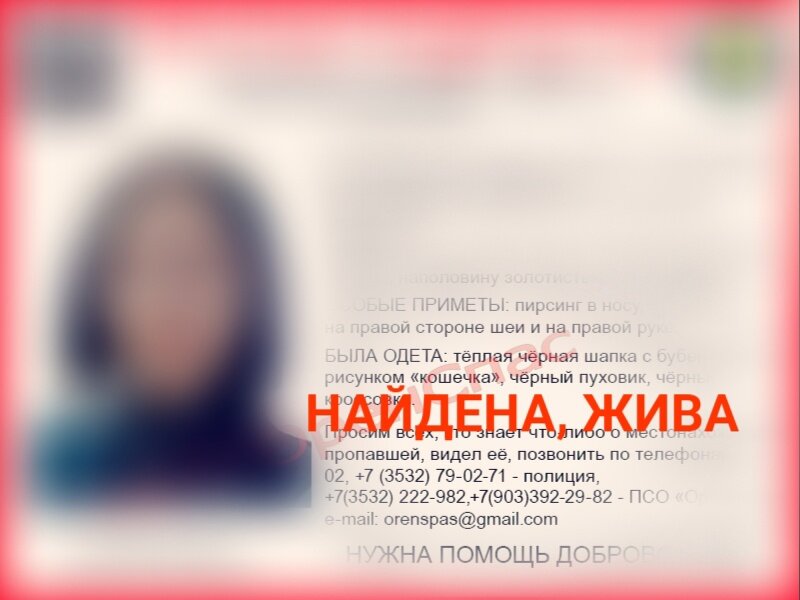 Сотрудники полиции и волонтёры ПСО «ОренСпас» установили местонахождение без вести пропавшей жительницы Оренбургского района. 16-летняя девушка была найдена живой. С ней все в порядке. Жизни и здоровью оренбурженки ничто не угрожает. Подробности поисковой операции не уточняются. Причины ухода девушки из дома выясняют сотрудники полиции. Проводится проверка. Как писал «Оренбург Медиа», несовершеннолетняя девушка пропала 24 октября 2023 года. Она ушла из дома на хуторе Медовка поселка Пригородный и не вернулась. Родственники обратились в полицию и к волонтёрам. Девушка была объявлена в розыск.