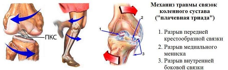 Разрыв ПКС в подавляющем числе случаев сопровождается одновременным повреждением внутренних (медиальных) мениска и коллатеральной связки. Такую сочетанную травму называют «несчастливой/злосчастной/плачевной триадой».