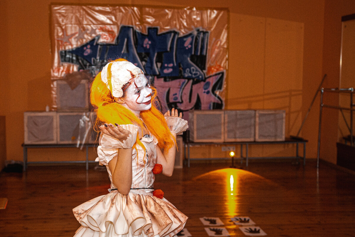 «Мой этап был в стилистике «Алисы в стране чудес». Задумка – активное взаимодействие с организаторами (нами), работа над образами. Маску мыши и шляпу шляпника, мы, например, создавали очень кропотливо и долго. В конце концов, получилась некая театральная миниатюра с соответствующим реквизитом. С уверенностью могу сказать, что отыгрывать роли без сценария, а лишь с прописанными характерами, и действовать в зависимости от ситуации, было безумно интересно. Образы хорошо подчеркивала локация, которую мы выбрали – зеркала, которые отражали свет проектора на колонны, просторное помещение гардероба, плюс вайб. Очень хотелось задать высокую планку, чтобы первокурсники, участвовавшие в игре, испытали очень много эмоций. Я думаю, наша команда с этим справилась».