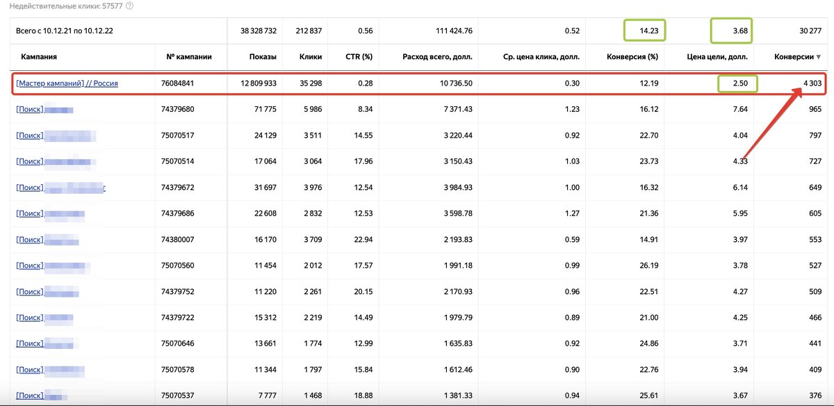 Да да, здесь нет ошибки или опечатки. И это именно заявки! 1043 контакта от клиента. Я не буду писать какой это бизнес. Могу лишь сказать что реклама работает на всю Россию и средний чек 7000 руб. Посмотрите какой результат дает МК когда обучается на большом объеме данных: Обратите внимание на цену конверсии в 2,5 доллара (курс 68 руб). Сама конверсия ниже средней, но ее показатель также впечатляет - 12%. Посмотрите на недельные показатели: Цена конверсии уменьшена до 1,5 доллара и заявки продолжают идти! А конверсия выросла до 20%. Более подробно с другими кейсами и услугами вы можете ознакомиться на нашем сайте и записаться на бесплатную консультацию. Переходите на Dirbix.ru.