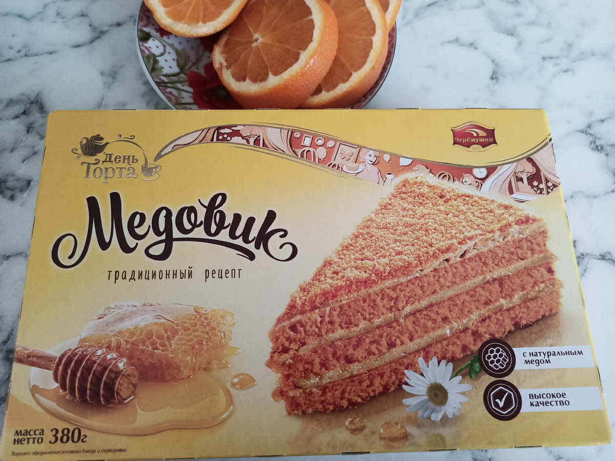 Несколько дней назад купили в магазине Чижик вот такой торт, аж 2 штуки. Один попробовать, а другой на случай, если гости нагрянут. Сегодня решили попробовать сами. Заварили вкусный чай, открыли тортик. Срок годности до конца февраля 2024 г, условия хранения до +25 градусов. Цена была 129 руб. Первая позиция в чеке Не смотря на неоднозначный состав, (а где он сейчас однозначный?), тортик нам всем понравился. Мягкий, нежный, вкусный. Если будет снова путь в Чижик, возьму ещё несколько штук, тем более Новый год на носу, вдруг кто нибудь, кто "хуже татарина", ну, вы поняли кого я имею в виду, в гости завернёт. А мы во всеоружии! Встретим, приветим, накормим, в баньке попарим, на дорожку скажем заветные слова, типа: " Пришел, спасибо! Ушел - большое спасибо!" Шучу! Всё, как в русских традициях. В общем, торт такой брать очень даже можно! И цена не кусачая.