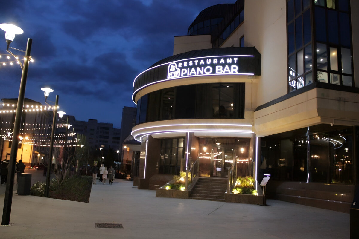 Одно из популярных мест отдыха горожан в Тюмени, где складывается особенная атмосфера и чувствуется «душа города» – пешеходная улица Дзержинского. Яркие гирлянды, палатки с кофе, сувенирами и вкусностями, а также выступления артистов и музыкантов задают тон неспешной прогулке. Но первое, что зацепило мой взор, когда я оказалась здесь, – ресторан PIANO BAR в самом начале улицы. Тем вечером в его панорамных окнах мерцал приглушенный свет, который казался таким тёплым и уютным. Уже тогда я решила, что непременно должна посетить это место. И вот я здесь! Я пришла сюда одна, без мужа и дочери, потому что маме тоже нужен отдых😊. Администратор ресторана любезно проводила меня на второй этаж к тем самым окнам, и я замерла в восхищении: вид был прекрасен! В зале стоял красивый чёрный рояль, на котором пианист в элегантном костюме играл знакомые мелодии. Это вообще придаёт заведению особенный шарм. Интерьер, детали декора, большая хрустальная люстра в фойе, лёгкая ненавязчивая музыка... Отовсю