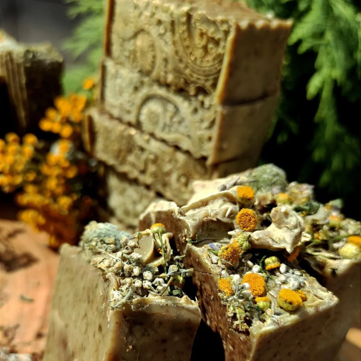 Полынь - сильное растение. Аюрведическое полынное мыло сварено на отваре полыни и пижмы, маслянном настое (все масла - инфузы полыни и пижмы), с эфирным маслом и экстрактом полыни. В мыло добавлена измельченная трава, мёд, глицин, спирулина, зелёная глина и немного белой. Для ухода - пережир масла Ши, инфузы кокоса и Оливы на полыни. В косметологии полынь ценится за хорошие очищающие свойства, способность нормализовать жирную кожу, сузить поры. Полынь улучшает кровообращение, тонизирует, освежает кожу. Мыло подойдёт для любого типа кожи. В наличии мыло холодным способом - Аромат полынный, горьковато-свежий, терпкий, чистая полынь, пережир 3% инфузов масел. И горячим способом взбитое, с глицином и кукурузным крахмалом, с мёдом и с более мягким ароматом - эфирное масло полыни смягчено эфирными маслами шалфея мускатного и нероли. Пережир 10% инфузов. Оба сорта для нормальной и склонной к жирности кожи Мыло оказывает общеоздоравливающее, бактерицидное и дезодорирующее действие. От