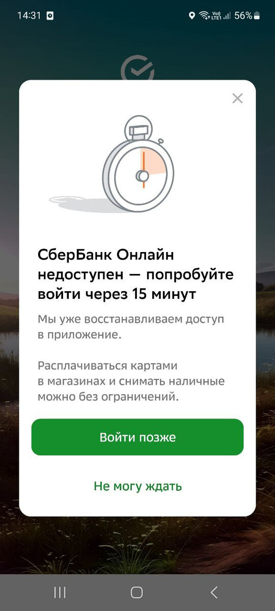 Массовый сбой произошел в работе мобильного приложения Сбера Пользователи мобильных сервисов Сбера столкнулись с техническим сбоем в приложении банка 27 октября. Об этом «Фонтанке» сообщили читатели. При попытке воспользоваться сервисом «Сбербанк Онлайн», приложение рекомендовало войти через 15 минут. «Мы уже восстанавливаем доступ в приложение. Расплачиваться картами в магазинах и снимать наличные можно без ограничений», — гласит всплывающее на экране сообщение. В 14:44 РИА Новости со ссылкой на банк сообщило, что все затруднения в работе его систем устранены, все сервисы функционируют в штатном режиме. Корреспондент «Фонтанки» убедился, что все действительно работает. Причины произошедшего пока неизвестны. «Фонтанка» обратилась в пресс-службу Сбера за комментарием.