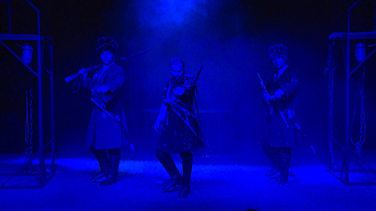Большие гастроли на сцене казачьего театра – в Волгоград приехала труппа Национального театра Республики Адыгеи. Артисты с Северного Кавказа привезли три постановки. Какие эмоции и переживания испытали зрители после просмотра спектакля «Всадник счастья» на адыгском языке. Зрителям выдают специальные наушники – в них будет звучать голос переводчика. Ведь в ближайшие два с лишним часа публика не услышит русскую речь – актеры играют на родном языке. Середина 19 века. Черкесы движутся по лесам Восточной Европы. Восстание венгров подавлено, но дорога домой лишь кажется скорой – всадникам преграждает путь Прусский кордон, столкновение неизбежно. Эстетика боя показана в национальном танце. Плен, тюрьма, обвинение в убийстве – горца собираются судить. Мотивы, которые движут героем в сложных обстоятельствах передает Азамат Хуадоков. Кому, как не черкесу, раскрывать характер своего народа. «Мужчина, который держит свое слово. Это стержень, это опора, это храбрость. Это также доброта и щедрость,