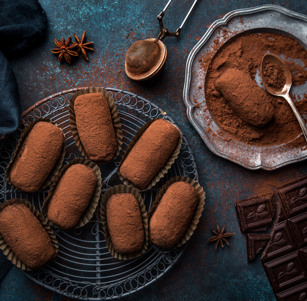 - Обваляйте каждое пирожное в приготовленной обсыпке так, чтобы оно выглядело как настоящая картошка.