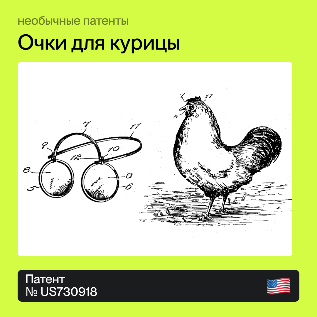 Публикуем подборку странных американских патентов из 19 и 20го века. Некоторые из них актуальны и по сей день и могут пригодиться в быту. Очки для курицы (патент №US730918)