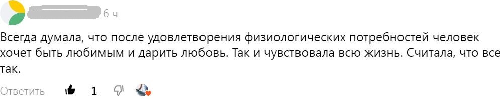 Из моей переписки с читательницей по теме прошлой статьи: Что такое НЕлюбовь? И что такое любовь? Екатерина Мухина (дает интервью, рассказывает о своей жизни, о проблемах своих взаимоотношений с дочерью): - …чаще всего это люди делают просто потому, что им не хватает внимания. Элементарного, человеческого внимания. Мы все прекрасно помним фильм "Нелюбовь". Всё там, в этом фильме. <…> Светлана (интервьюер): - Я не люблю этот фильм. Для меня он очень жесткий <…> Для меня это фильм такого отчаяния, что мне после просмотра Екатерина: - Так большинство людей так и живут! Им вообще друг на друга всё равно! Они живут каждый своей жизнью, они не интересуются. И я делаю такие ошибки! Маша, вчера, например, мне вчера рассказывает - Маша – дочка? - Дочка, да. Я говорю, Машуль, послушай меня, давай… А она говорит, мам, нет, это ты послушай меня. Я тебе рассказываю и я хочу, чтобы ты знала детали. Я сижу и думаю, Кать, ты сейчас не права, ты почему её перебиваешь? То есть я уже готова была дать ей