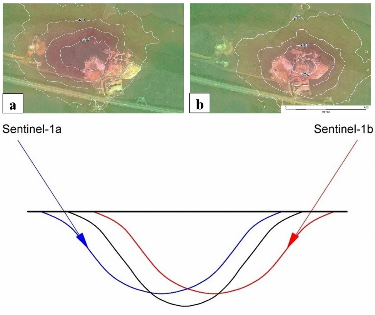 (Результаты: Вселенная. «ХиЖ» 2023 №10) Интенсивная добыча полезных ископаемых неизбежно разрушает ландшафт, деформируя почву и грунт. Поэтому в зонах горных работ обычно проводят мониторинг поверхности, который должен исключать эти опасные явления. В развитых странах применяют метод спутниковой радарной интерферометрии месторождений и выработок. Тем же методом контролируют и природные явления — оползни, вулканы и землетрясения. Один спутник не дает абсолютные величины смещений поверхности, поскольку его зондирующий сигнал обычно не падает перпендикулярно к исследуемой поверхности. Поэтому сотрудники Яковлевского ГОКа, руководимые В.А. Тютюковой, инженером кафедры «Маркшейдерское дело, геодезия и геоинформационные системы» Пермского политехнического университета, анализировали местные деформации поверхности с помощью измерений, выполненных с двух европейских космических спутников — Sentinel-1a и Sentinel-1b. Наблюдательные данные этих спутников доступны всем желающим. В регионе ГОКа ис