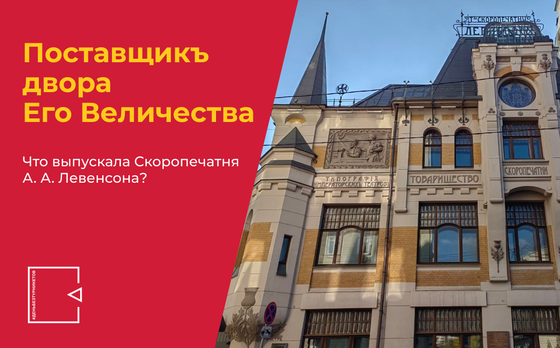 Скоропечатня А. А. Левенсона расположилась в Трехпрудном переулке. Её здание похоже на сказочный замок и сильно выделяется на фоне соседних построек: фасады и балконы-башенки украшены цветами чертополоха, деревянные двойные двери с фигурным стеклом похожи на бутон, а над ними надпись — Поставщикъ двора Его Величества.