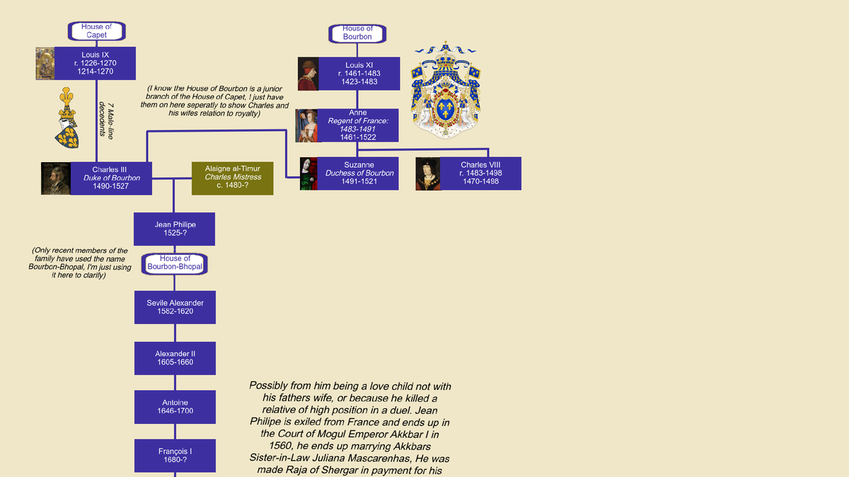 Опять же по моим сугубо личным впечатлениям, обсуждать стоит не только происхождение Жана Филиппа, а хотя бы еще и то назывался ли он Бурбоном при появлении в Дели? Не придумано ли это в конце XIX века «премьерами» Бхопала, действительно ведущими свой род от неизвестного авантюриста-счастливчика XVI века, как-то оказавшемуся в Дели? Уже будучи относительно образованными людьми, они подправили себе генеалогию, внеся туда имя Бурбон и подали доверчивым и почему-то некритически мыслящим Луи Руссле и полковнику Кинкейду.
