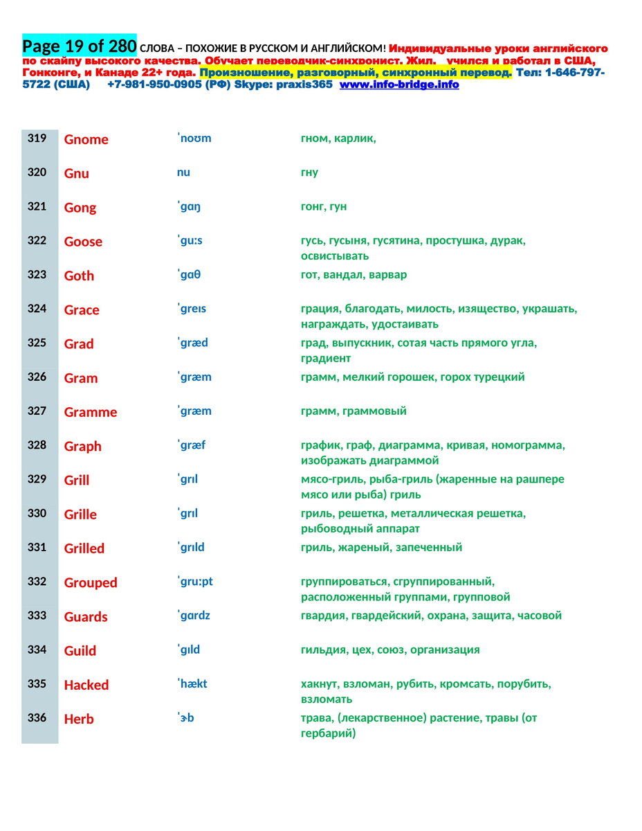 Я сделал транскрипцию всех слов отдельным приложением, чтобы вы всё правильно произносили, т. к. в англ. яз. пишут одно а произносят другое.