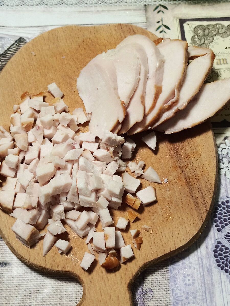 Салат с копченой грудкой и маринованными шампиньонами" ОБЖОРКА"