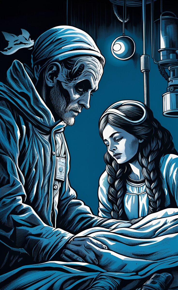 Успели поздравить всех. Костик быстро снял костюм, чмокнул в ухо и слинял. Сижу такая оглохшая слегка Снегурочка с посохом и мешком с праздничным реквизитом. Думаю, надо и мне переодеваться да двигать домой. Но одна мысль не даёт покоя. Не выходит из головы мужчина из одноместной палаты. Чем больше думаю, тем сильнее необъяснимое желание увидеть его ещё раз. Прям сердце о нём болит. Повинуясь необъяснимому внутреннему импульсу, я со всем новогодним скарбом оказалась у палаты таинственного пациента. Постучала. Нет ответа. Меня это не останавливает. Захожу и стою в дверях. Тишина. Никакой реакции. Набираюсь смелости и выпаливаю: