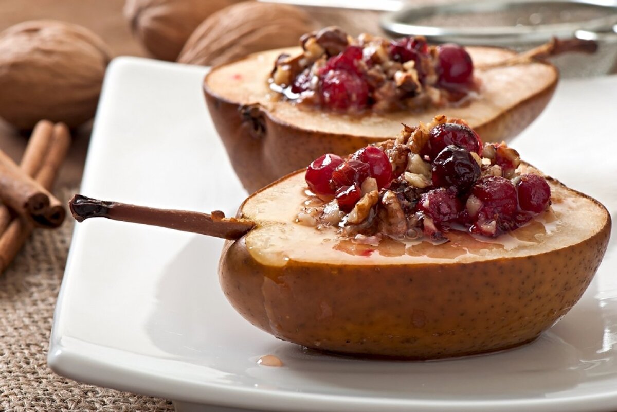 Наполните половинки груш получившейся смесью и аккуратно сжимайте их вместе.