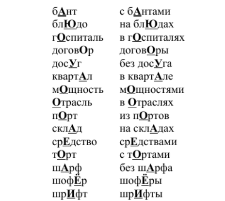 Небольшая статья, которая поможет Вам стать грамотнее. Существуют слова с неподвижным ударением, т.е. ударение всегда падает на один и тот же слог. Как правило, в форме им.п. ед.ч. постановка ударения не вызывает сомнений, однако изменение формы слова часто приводит к нарушению акцентологической нормы: Спасибо за внимание! Переходите на следующие небольшие уроки русского языка!