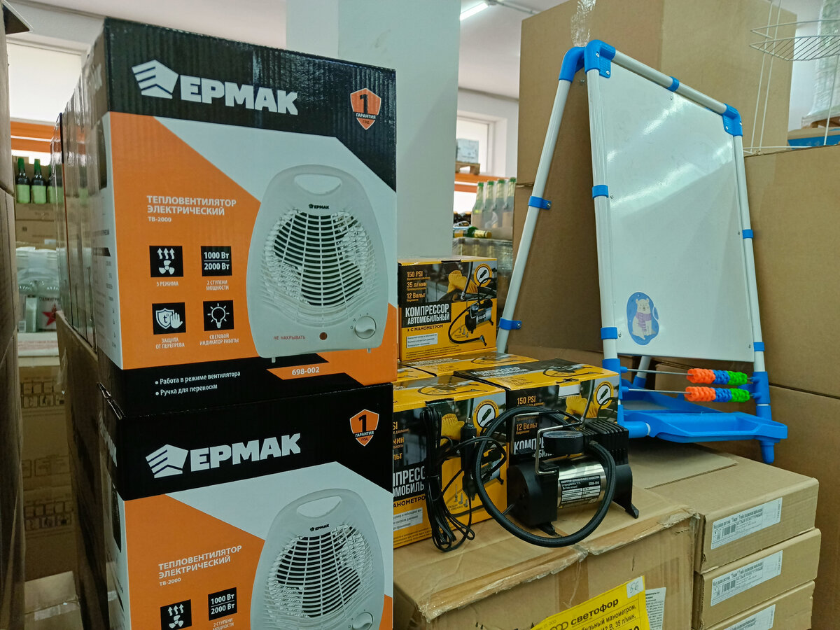 У нас в городе два "Светофора" и оба находятся почти в разных концах города. Но это не мешает покупателям и стоянка для автомобилей почти всегда полная, ведь все всегда хотят немного сэкономить. Постоянное обновление товаров и невысокие цены в магазине, притягивают к себе всё больше покупателей. И в этом обзоре, делюсь с вами увиденным в "Светофоре" города Крымск. Тепловентилятор "Ермак" мощностью 2000 ватт, с 3 режимами работы и защитой от перегрева. Цена 1078 рублей. Портативная акустическая колонка Velton с LED подсветкой, мощностью 8 ватт, с USB и SD разъёмом, FM-радио и функцией bluetooth. Цена 571 рубль. Компрессор с манометром для легковых автомобилей и 3 насадками, для подкачки мячей и надувных матрасов. Цена 717 рублей. Стеклянный набор из кувшина с крышкой и 6 стаканов объёмом 230 мл. Цена 464 рубля. Женская бритва Top Beauty с плавающими лезвиями и дополнительными кассетами из 19 штук. Цена 248 рублей. Гель для душа "Сто рецептов красоты" с экстрактом кофе, в бутылке 385 мл.